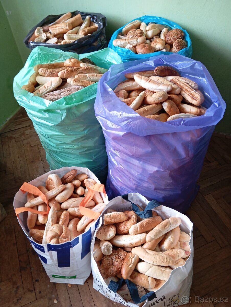 Prodám krmné pečivo a chleba, 4 pytle + dvě tašky. V pytli je cca 15 kg, v tašce cca 3 kg. Vše usušené, neplesnivé. Prodám nejraději vcelku, nebo i jednotlivě. Uvedená cena je za vše. Viz fotky. Hradec Králové. Inzerát platný do smazání.