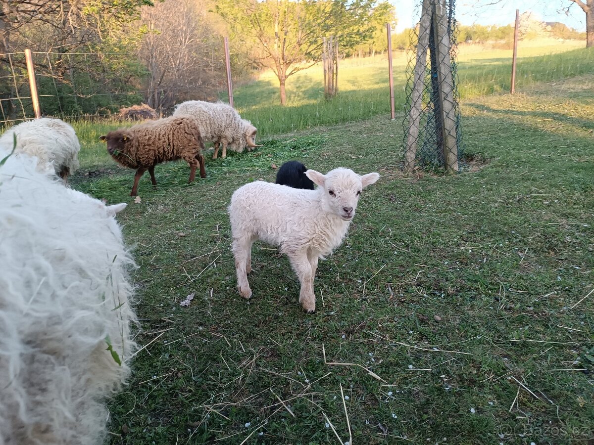 Nabízím bílého beránka narozeného 11.4.2026. Odběr možný na konci července. Ideální do chovu, NÉ NA ZABITÍ. Je po beranovi s POP.