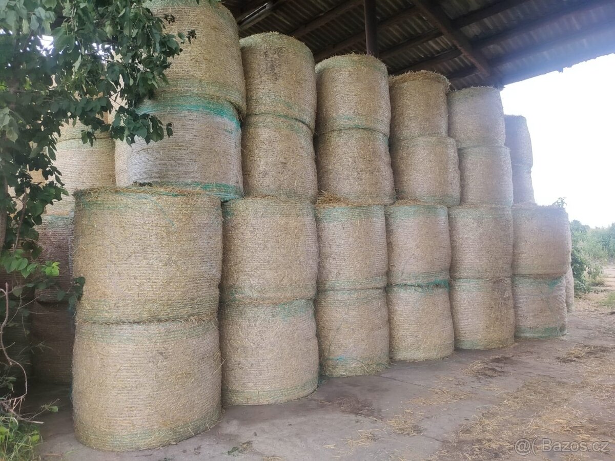 Prodám žitnou slámu, průměr balíku 140cm. Uskladněno pod střechou.