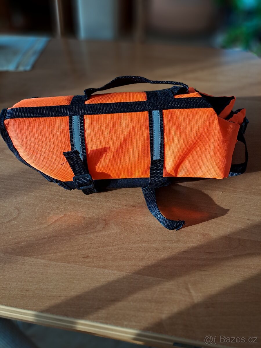 Prodám novou plovací vestu pro malého psa. Délka 28 cm, obvod hrudníku 42 - 60 cm.