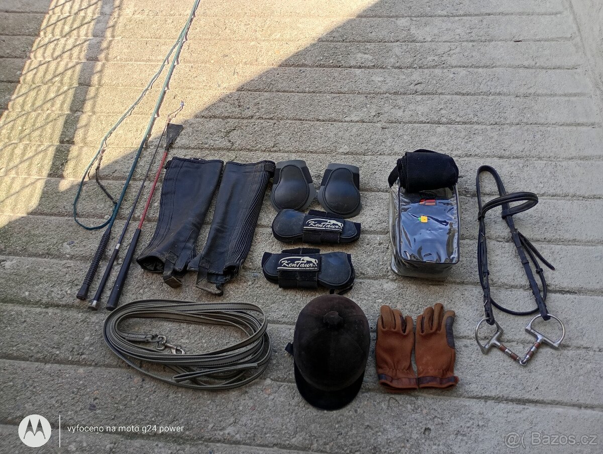 Daruji věci na koně za sladkost, vše použito, chrániče a uzdečka Full, helma velikost 57 Pište zprávy, jsem z Jiřic u Kostelce nad Labem