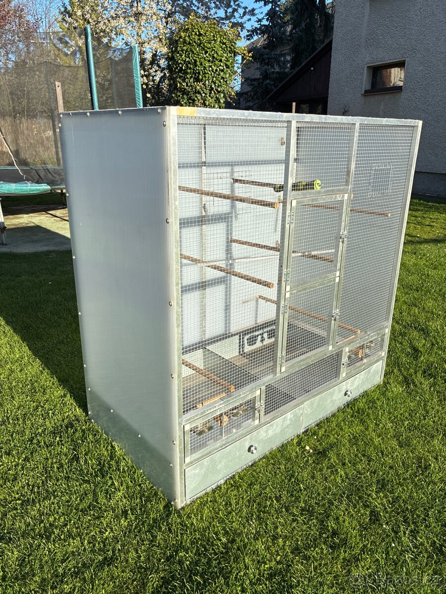 Prodám ptačí klec výška 130,šířka 130,hloubka 71.Velikost oka 11 mm.