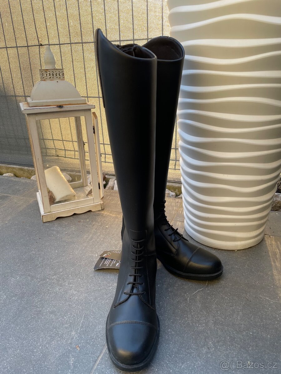 Vysoké jezdecké boty Equi Théme - vel.40 - [26.4. 2026]Černé, velikost 40 a standart lýtko, vysoké přední šněrování, gumová vsadka u zadního zipu. Boty pouze párkrát použité!. PC 5.500,- Kč, nyní 2.900,- Kč včetně poštovného