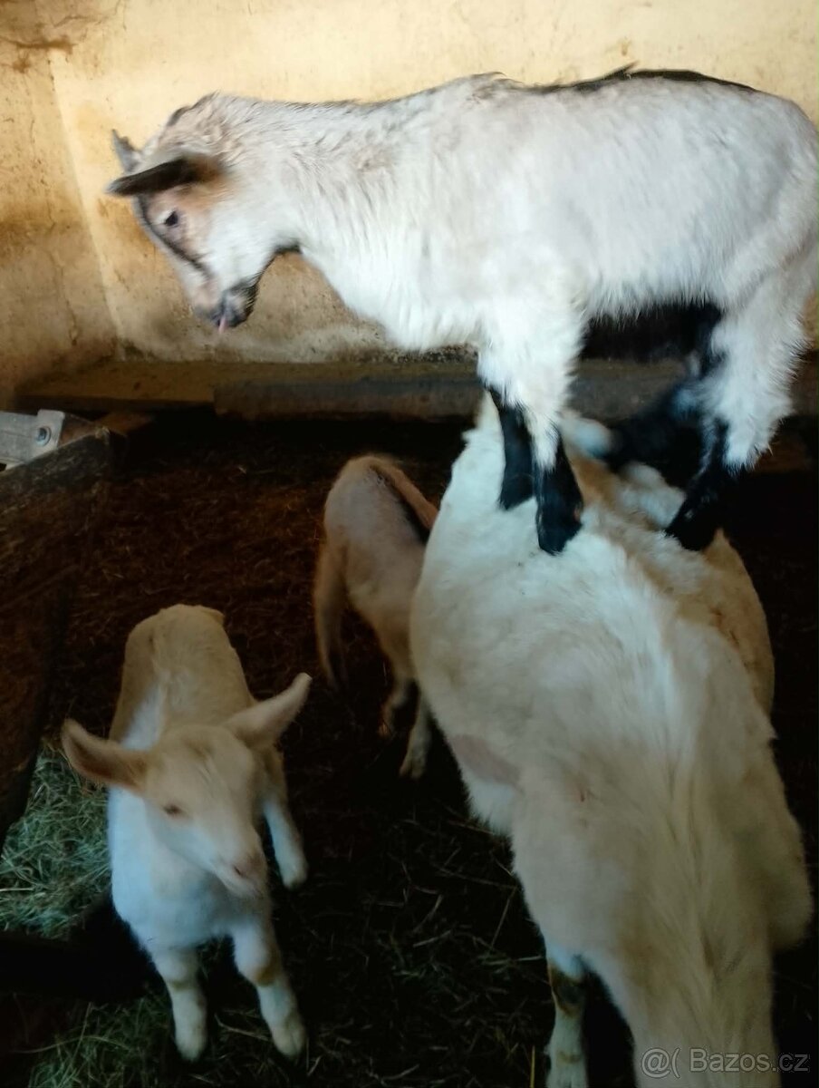 Prodám kůzlata, 1x kozička 2xkozlík. Kozlíci gumičkovaní, vhodní k pozdnímu výkrmu. 1000 kč za ks