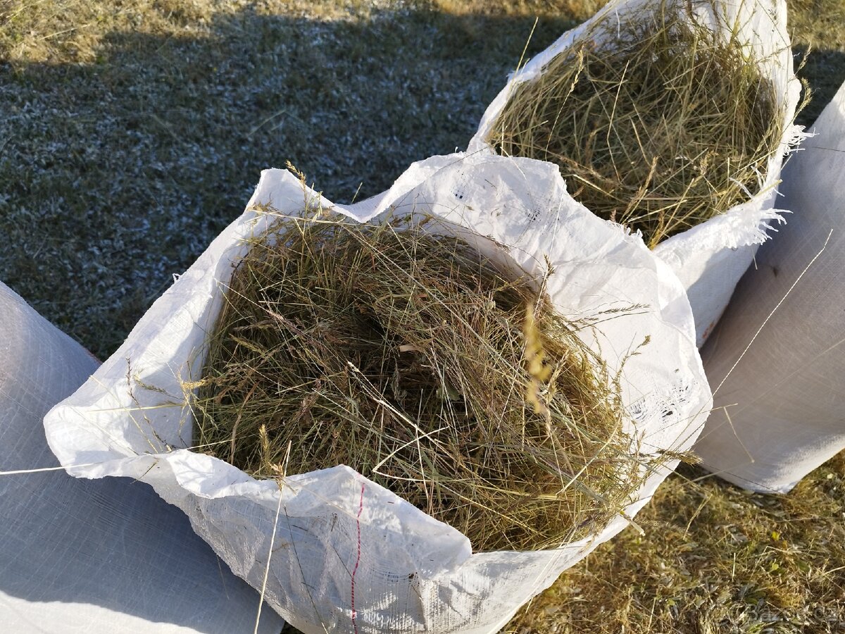 Prodám ručně sušené pytlované seno. Cena za pytel, pytle výměnou nebo + 10kc.