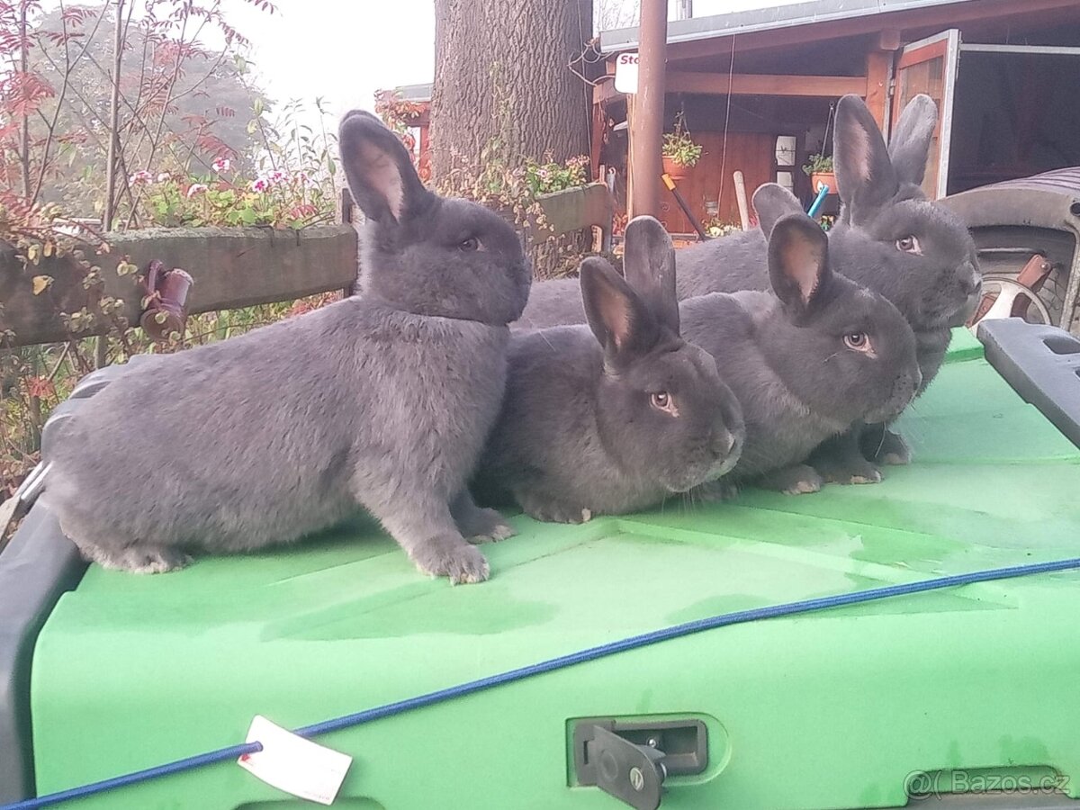 Prodám králíky vídeňské modré tři samice plus nepříbuzný samec vše tetované oceněné 95,5 cena 3500 za vše