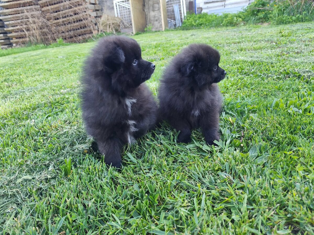 Prodám štěňátka špic pomeranian, poslední dva pejsci. K odběru ihned. Matka černá se stříbrnou, otec brown sable (vlkohnědý), předci jsou i black and tan, strakoši, merle, čokoládový. Fotky jsou aktuální. Na posledních dvou fotkách rodiče. Jsou vychovávaní jen doma, učeni na podložku, správně socializovaní, zvyklí na kočky a velké psy, bohatě nasrstěny, krátké čumáčky, stojaté uši, krásně rozmazleny. Krmeny kvalitními granulkami. Odčervení, čipovaní, očkovaní. Oba rodiče k vidění. S sebou dostanou granulky do začátku, podložky, očkovací průkaz a hodně rad o výchově i chovu tohoto plemene. Více informací po telefonu nebo se dojeďte podivat. Na SMS neodpovídám. Volejte, prosím, jen vážní zájemci , ne anonimové. Po špatné zkušenosti rezervuji pouze o proti záloze. Cena 8 000,- Kč