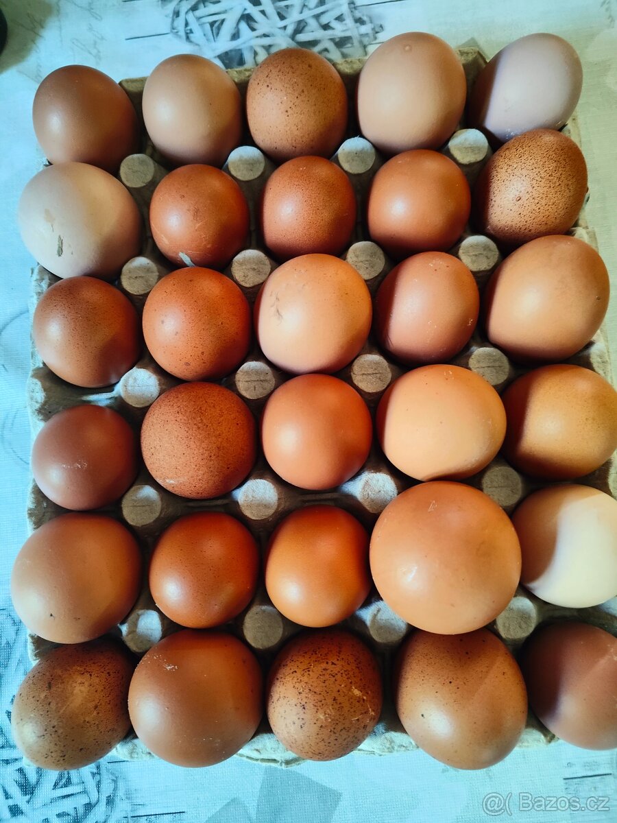 Nabízíme k prodeji přebytky vajec z našeho domácího chovu. Slepičky na volném výběhu, na celodenní pastvě, krmeny statkovými krmivy.