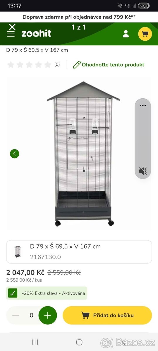 Prodám úplně novou nesestavenou ještě zabalenou voliéru, původní cena 2400 Kč nyní 1600 Kč. Jen vážní zájemci, nikam nezasílám!!