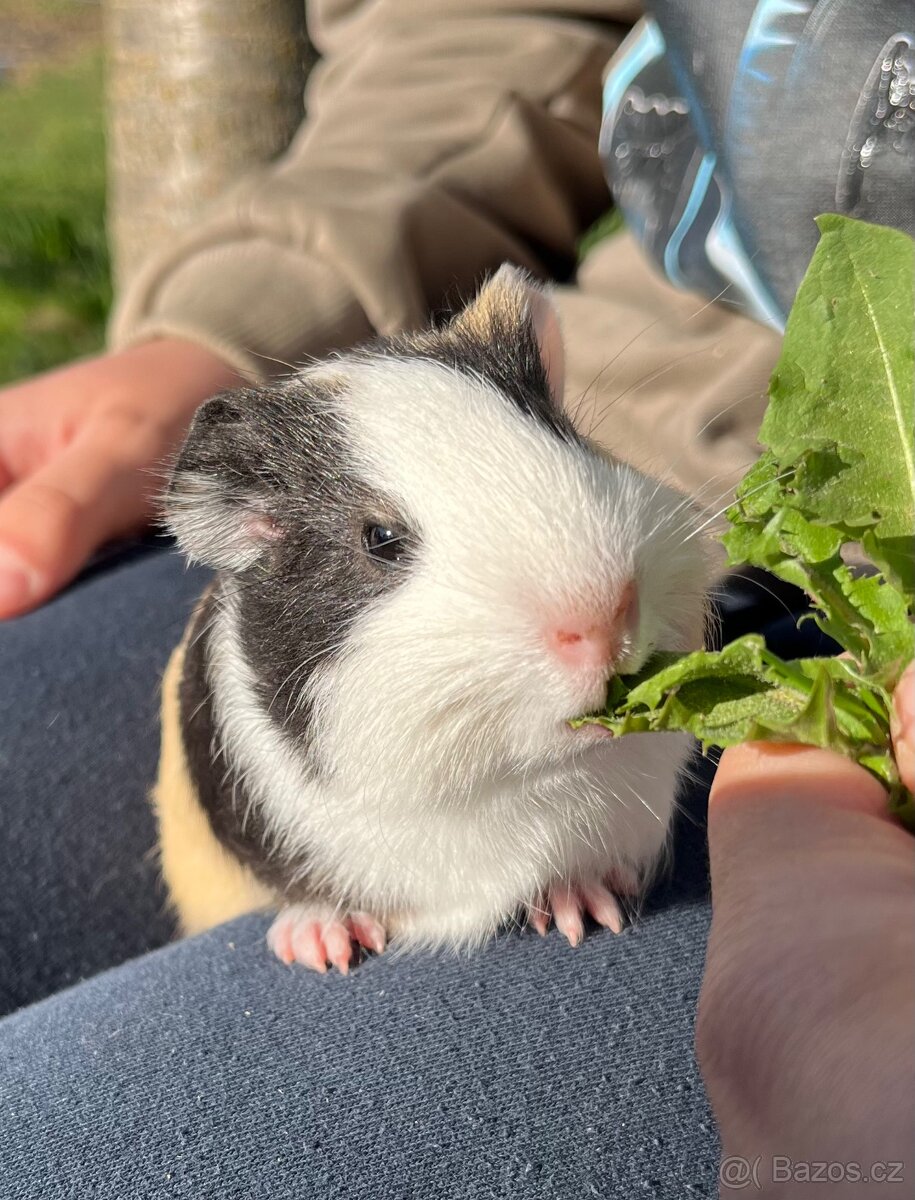 Nabízím samičku morčátka, 5 týdnů stará, ideální věk k ochočení. Má příjemnou zvědavou povahu.