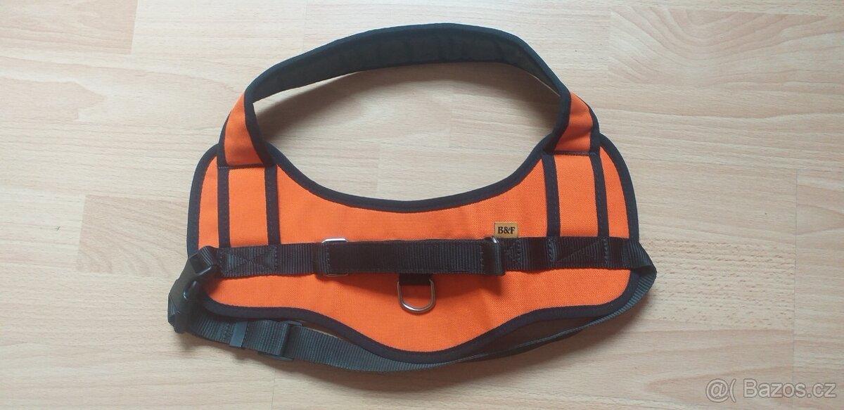 Prodám: 1) nepoužitý popruhový postroj na psa středního plemene zn. FB. Navlékne se psovi přes hlavu a zapne pod hrudníkem. Má očko pro připnutí vodítka a madlo pro uchopení. Největší obvod „okolo hrudníku“ cca 86 cm. Cena při osobním převzetí 250 korun, nebo + poštovné, 2) Sedák s plně odepínatelnými popruhy kolem nohou zn. Mutt and Go