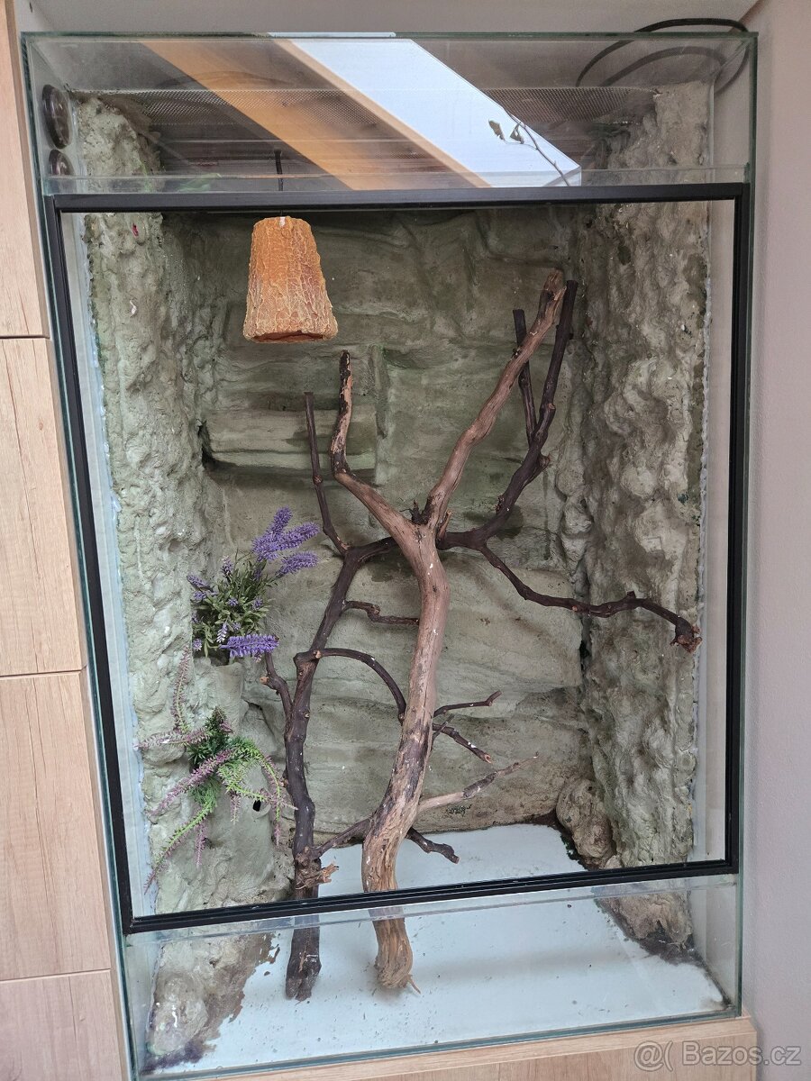 Terárium - [27.4. 2026]Prodám terárium 90x46x46 (šxvxh) , ve výborném stavu, bez poškození s výbavou. Otvor pro kabeláž, odnímatelný poklop, zámek, osvětlení.