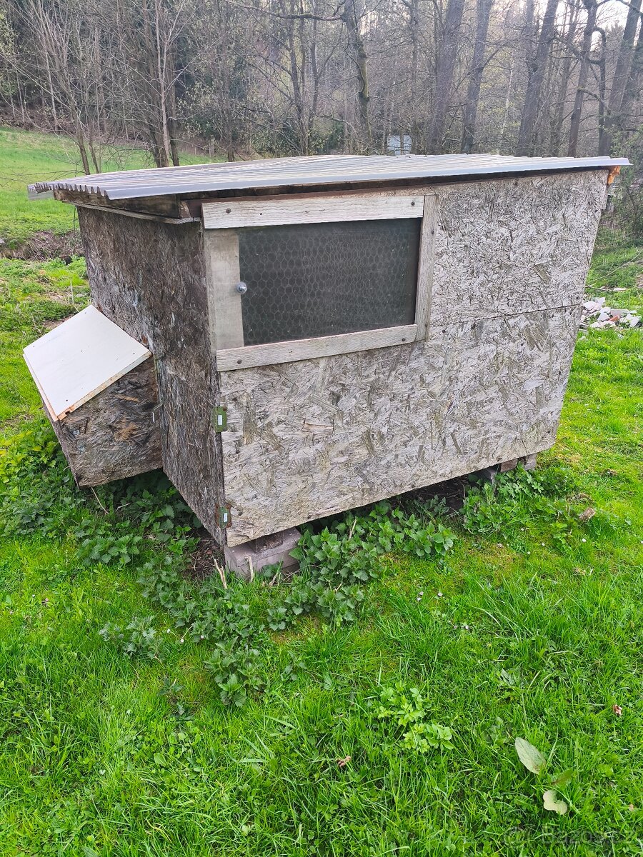 Zateplený kurník, stropní zateplení vyzobaly slepice, nutno opravit. V105*Š155*D163. Poctivej prkna trámky. K naložení 4 velký chlapy!!!