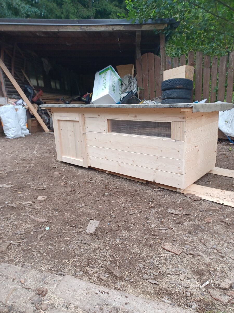 Dobrý den prodám nový zateplený kurník či kachník rozměry výška 72cm hloubka 95cm šířka 200cm zhotoven ze smrkových hoblovaných prken zateplený 2cm polystyrenem odklápěcí střecha na střeše základ pískováná lepenka.