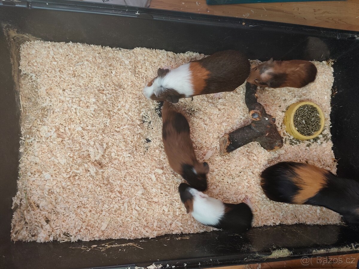 Morče hladkosrsté - [26.4. 2026]Prodám morčata kluci. Platí do smazání. Narozena v únoru. Cena za kus 100kč Tel.: 731866583