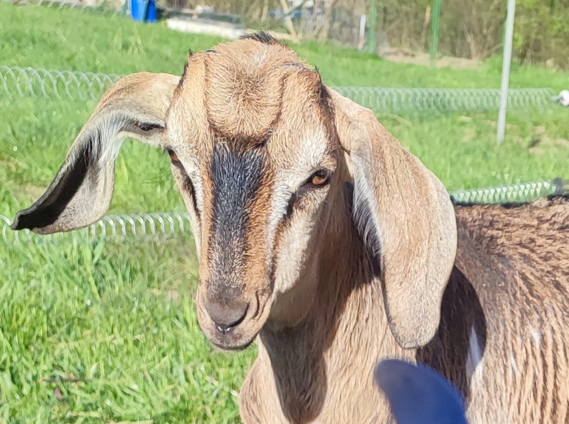 Prodám tříměsíčního kozlíka. Je velký, geneticky bezrohý, otec anglonubijský rohatý, matka podílová anglonubijka.