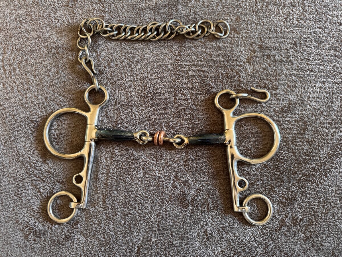 Prodám 2x lomený pelham 13,5 cm s měděnými válečky. Udítko je anatomicky tvarované, tloušťka je 14 mm.