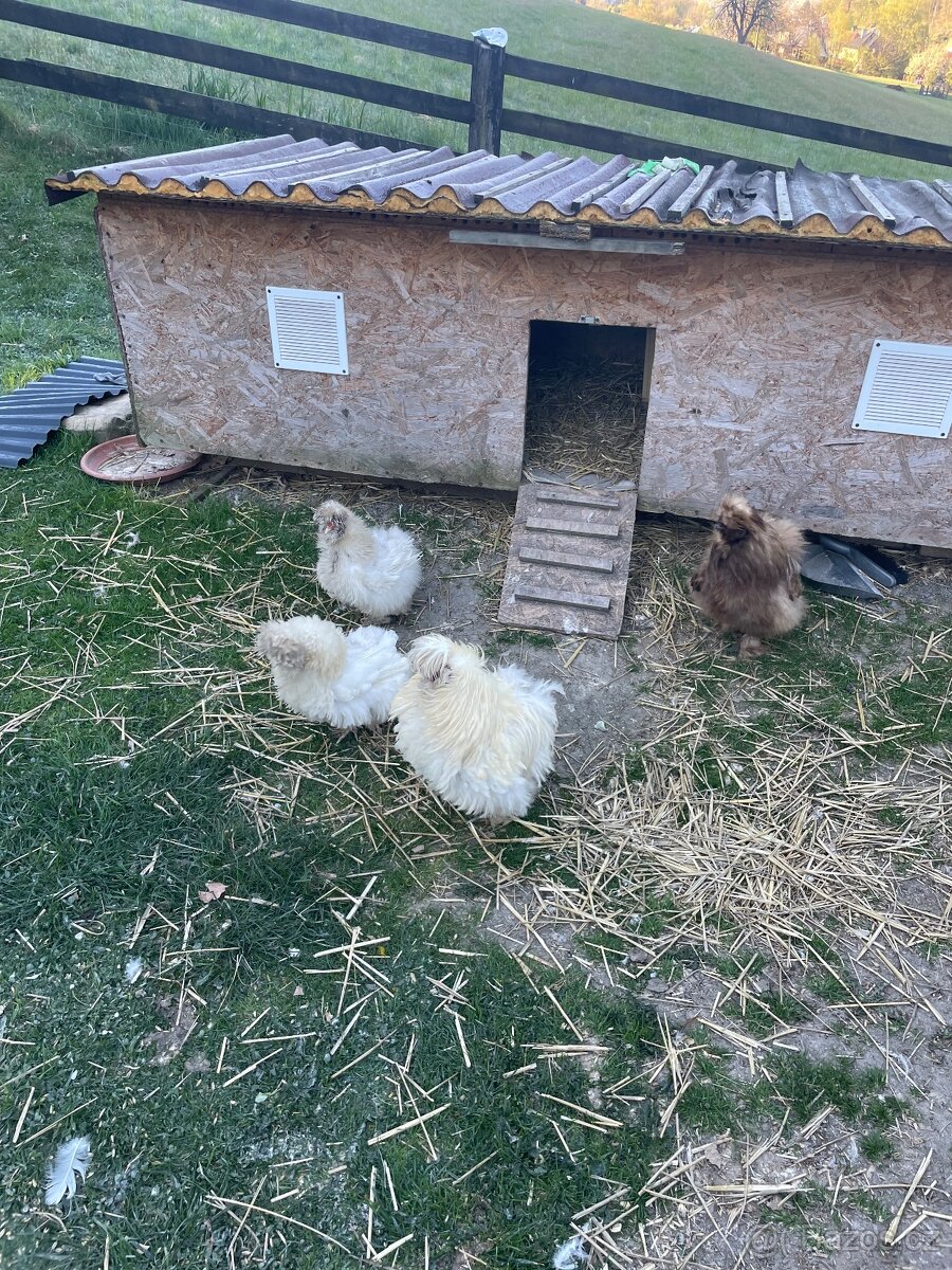 Hedvabnička EU velká - [28.4. 2026]Dobrý den, prodám 3 slepičky 2 leté hedvabničky EU šikovné kvočny.